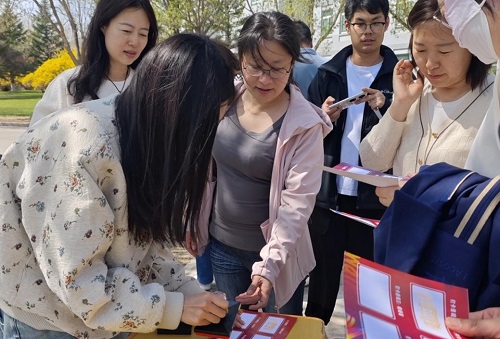 学院工会主席张丽宣读了工会倡议书,倡议全体教师率先垂范、以身作则,做绿色低碳出行的风向标,引领更多的人积极参与绿色出行活动中来,共创绿色出行新风尚。随后,参与活动的教师逐一领取了签到卡片,个个精神抖擞,抬头挺胸,迈开步子,逐梦前行。
