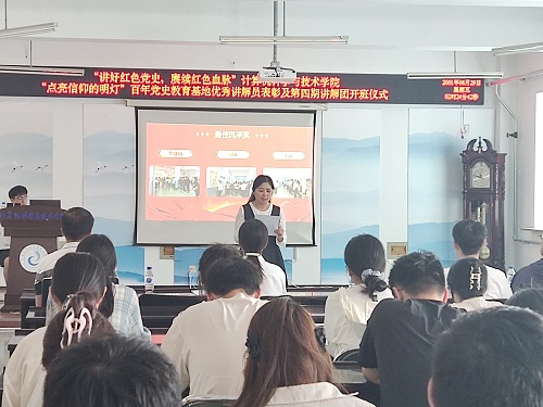 5月29日下午,计算机科学与技术学院“讲好红色党史,赓续红色血脉”“点亮信仰的明灯”百年党史学习教育基地优秀讲解员表彰及第四期讲解团开班仪式在致本楼E座517学术报告厅举行。学院党委书记王菲、党委副书记张丽、学生党支部书记、基地讲解团全体成员参加了会议,会议由学院专职组织员及研究生第一党支部书记侯建梅主持。