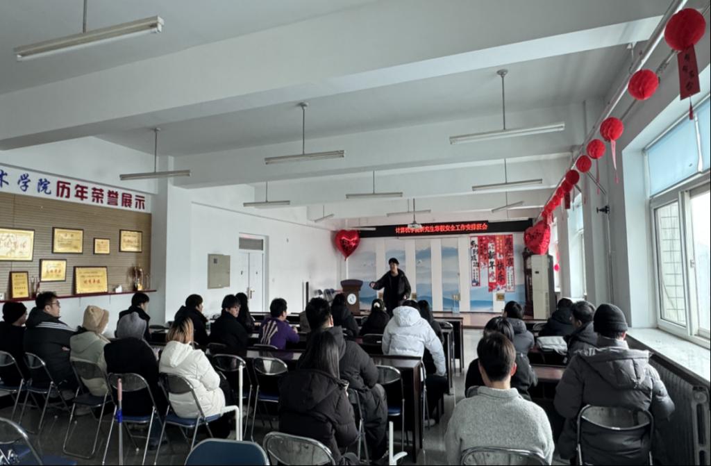 为贯彻落实学校关于寒假留校研究生教育管理工作要求,切实保障留校研究生的人身与财产安全,1月15日,学院召开寒假留校学生安全工作会,全体留校研究生参会,辅导员李鹏飞主持。