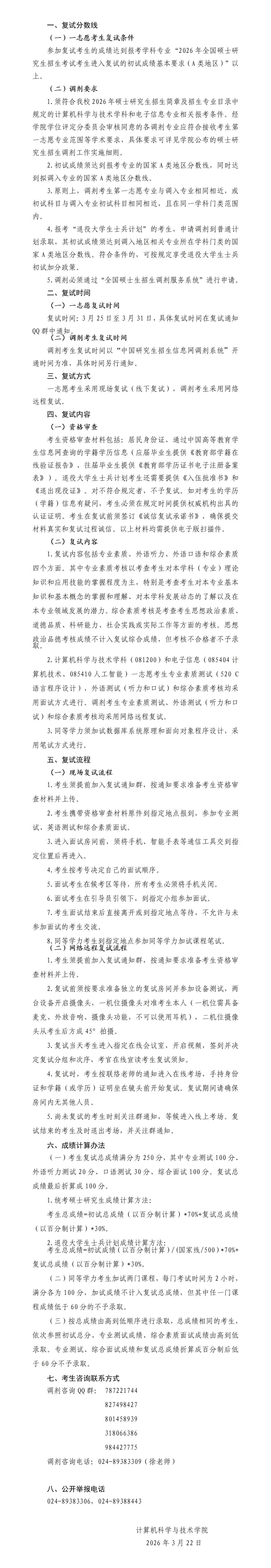 计算机科学与技术学院2026年硕士研究生招生复试录取工作实施细则