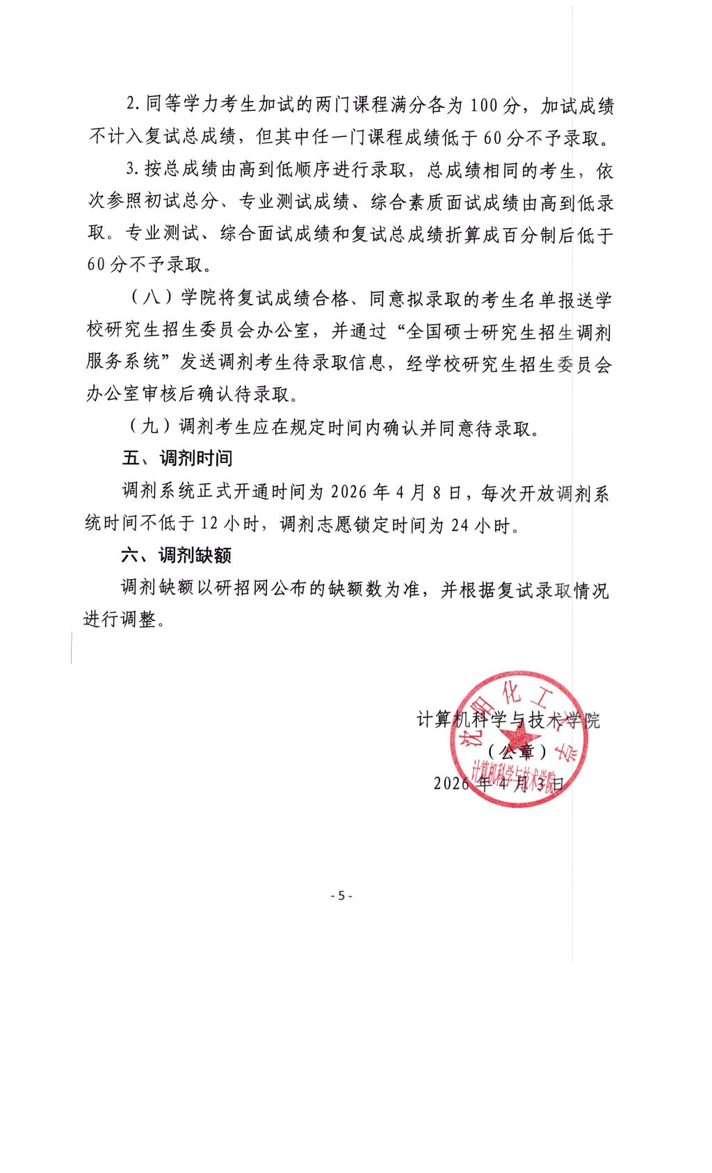 计算机科学与技术学院2026年硕士研究生招生调剂工作实施细则