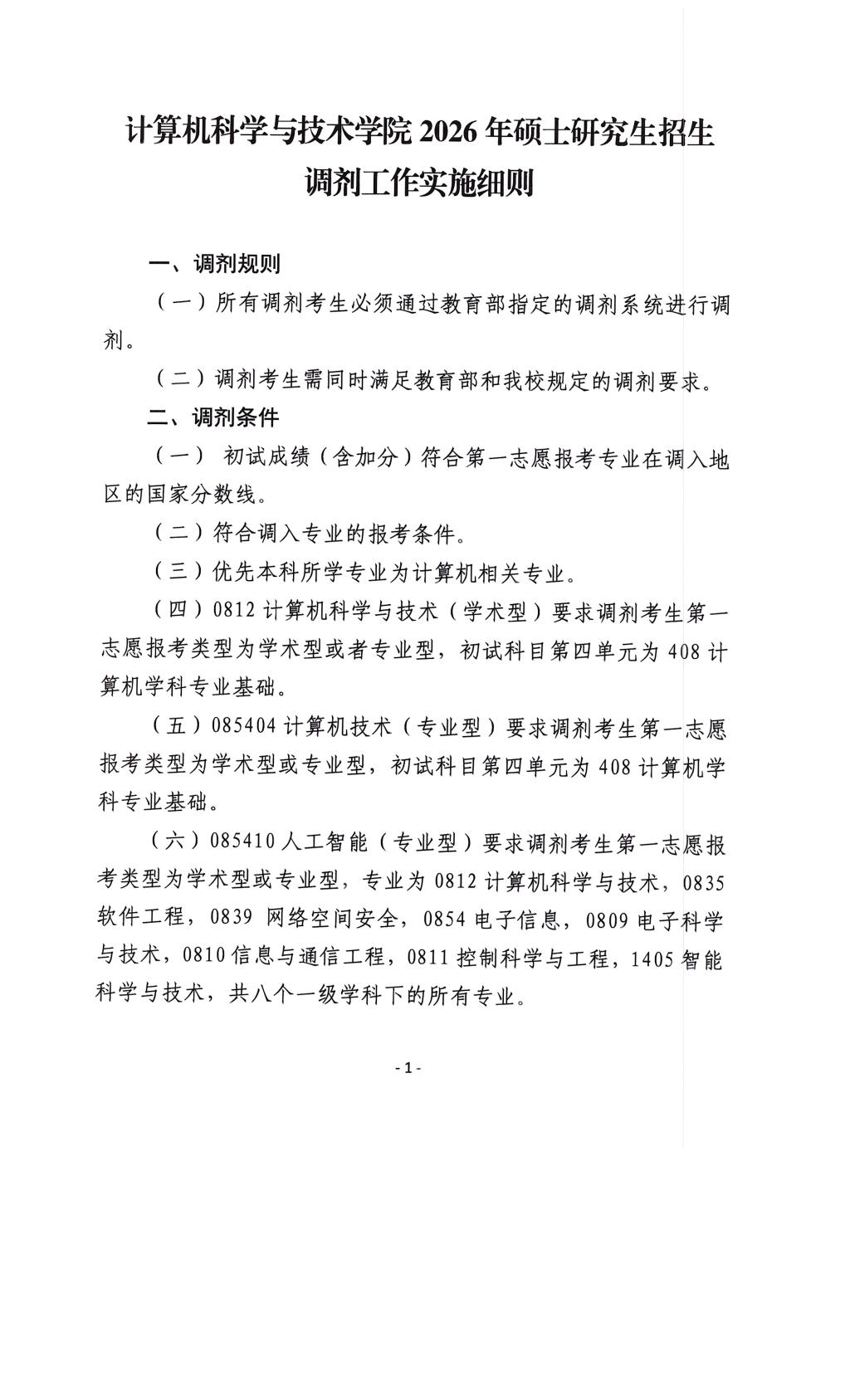 计算机科学与技术学院2026年硕士研究生招生调剂工作实施细则